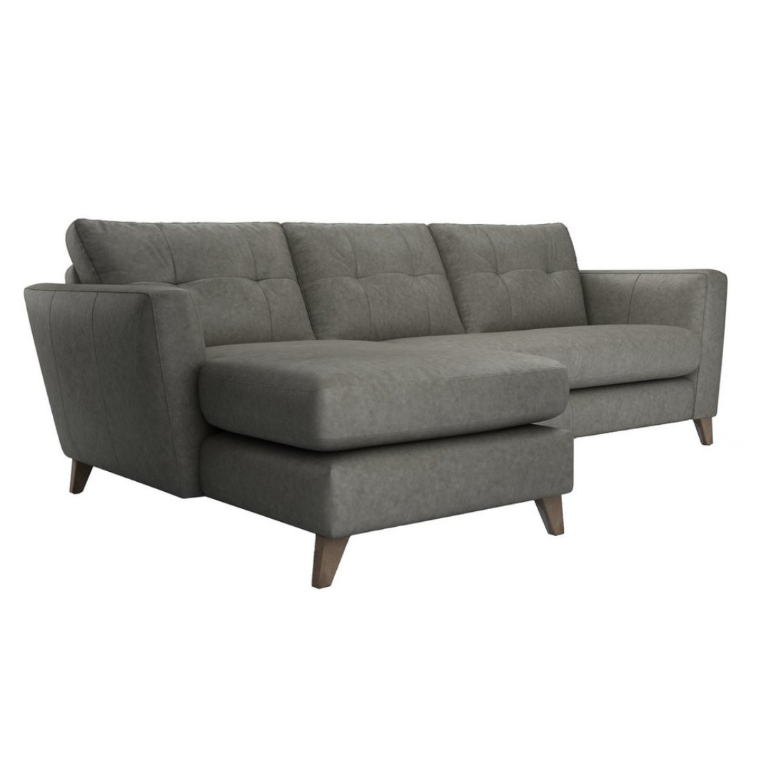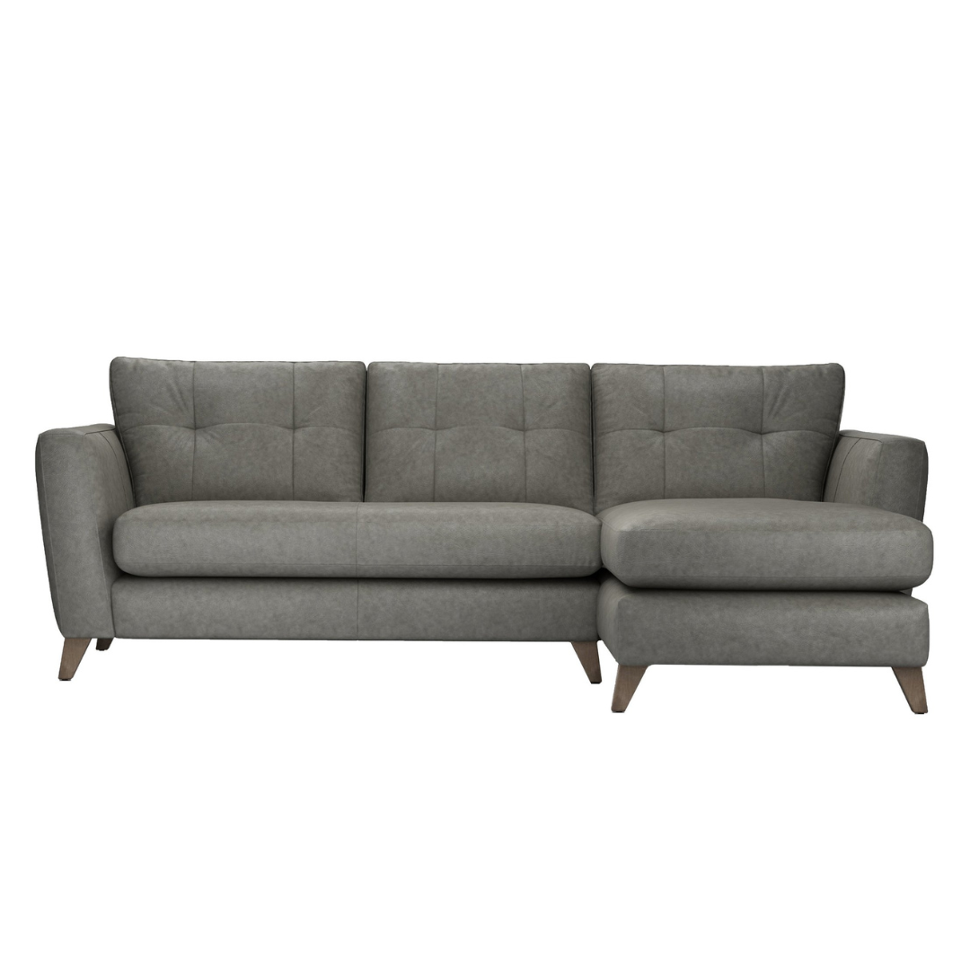 Experience luxurious comfort and timeless design with this stunning leather corner sofa featuring a chaise end. Combining sleek contemporary lines with a hint of mid-century charm, this sofa adds effortless sophistication to any living room. Its soft, genuine leather upholstery, button-back detailing, and elegant tapered wooden legs create a beautifully balanced piece that’s as durable as it is stylish. Perfect for modern homes, this handcrafted sofa delivers lasting comfort and refined elegance in every detail.