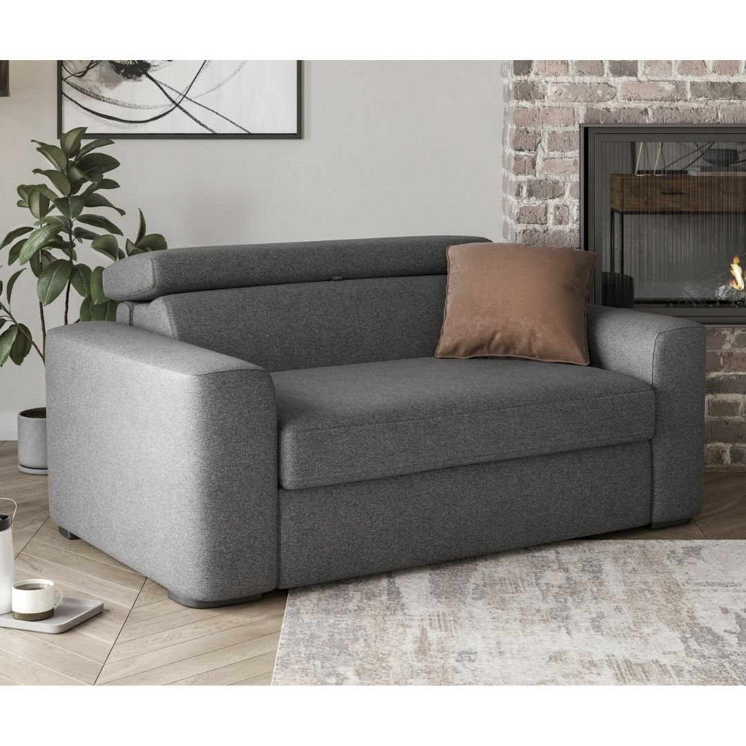 Modern fabric armchair sofa bed for stylish compact living.