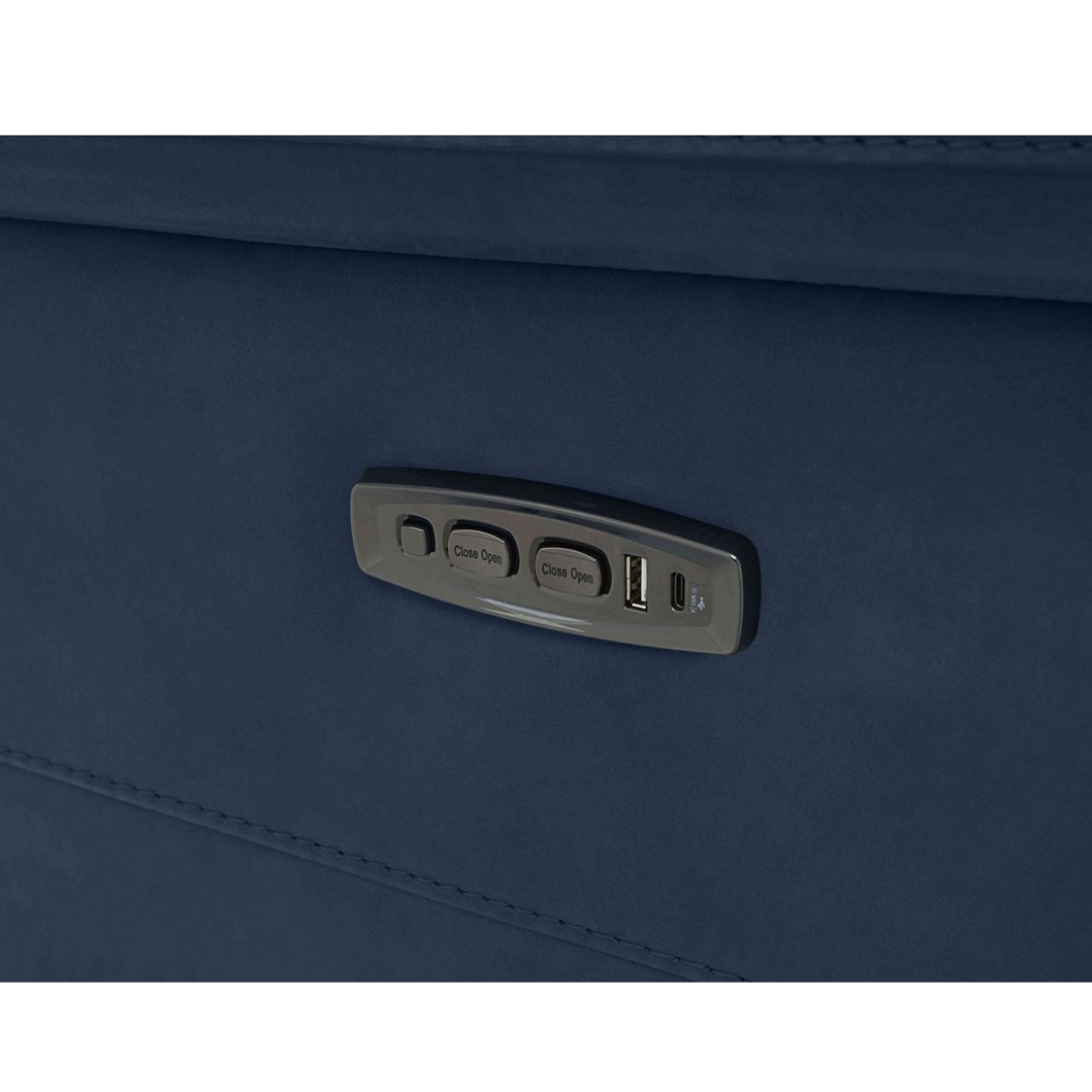 Technology: Power recliner and power headrest mechanisms with built-in USB ports.