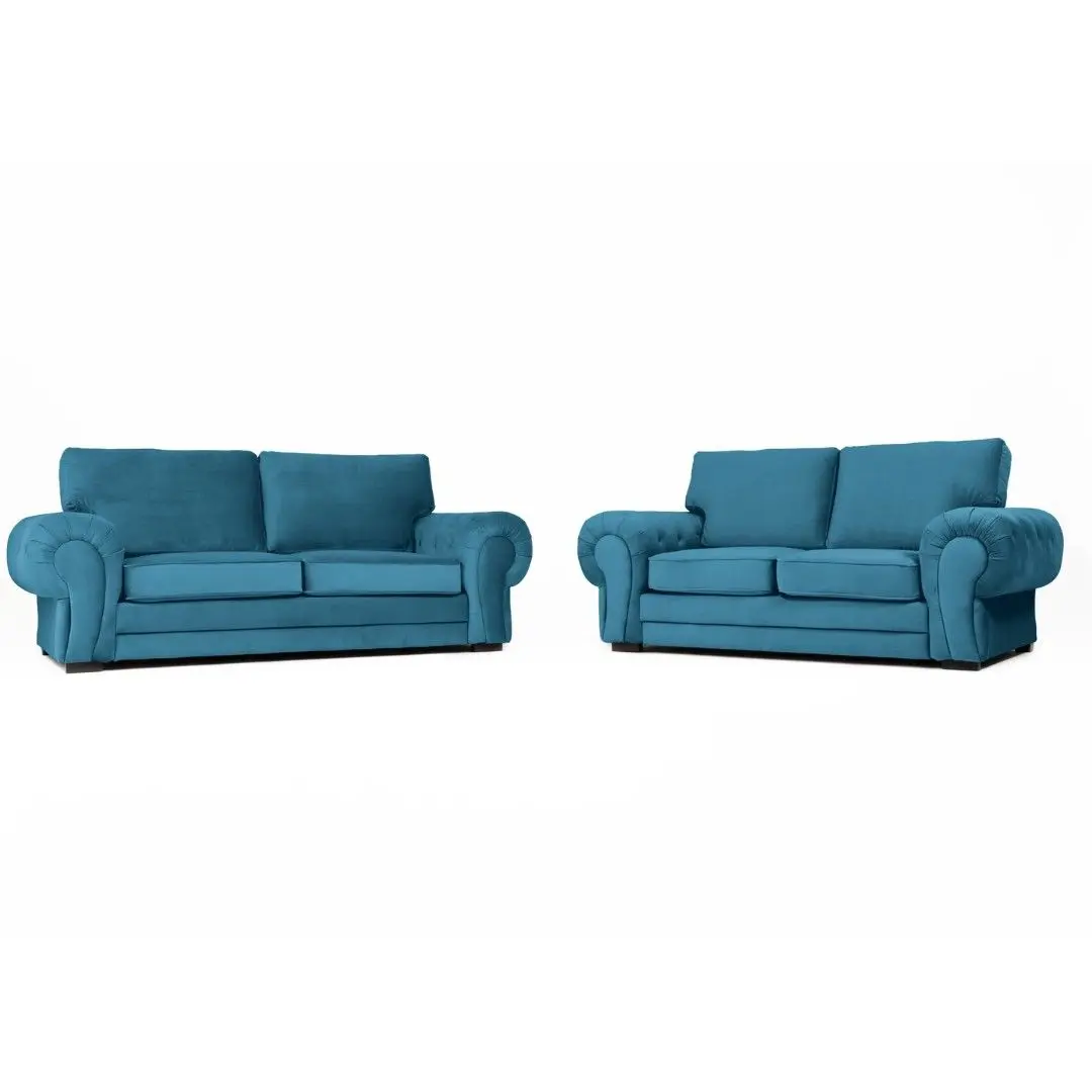 The Verona Velvet 3+2 Sofa Set offers a blend of luxury and comfort. Upholstered in soft velvet, it adds elegance and warmth to any living room. The set includes a 3-seater and a 2-seater sofa, both built on a strong wooden frame for durability. Plush cushions provide excellent comfort, while chrome legs give it a modern touch. Perfect for relaxing or entertaining in style.